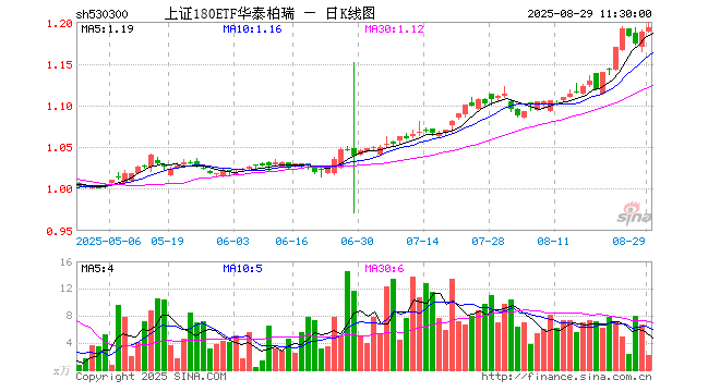 上证180ETF华泰柏瑞(530300)涨0.42%, 半日成交额256.82万元